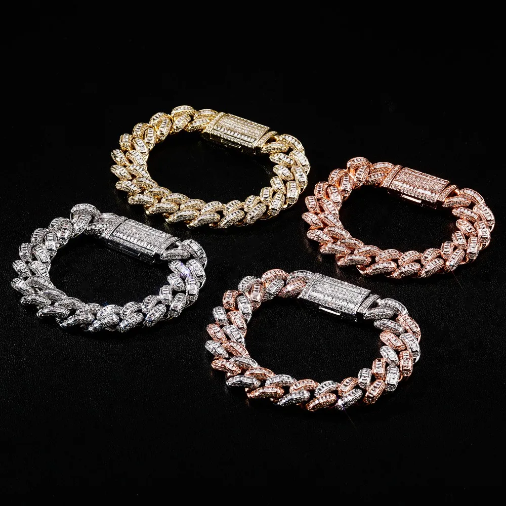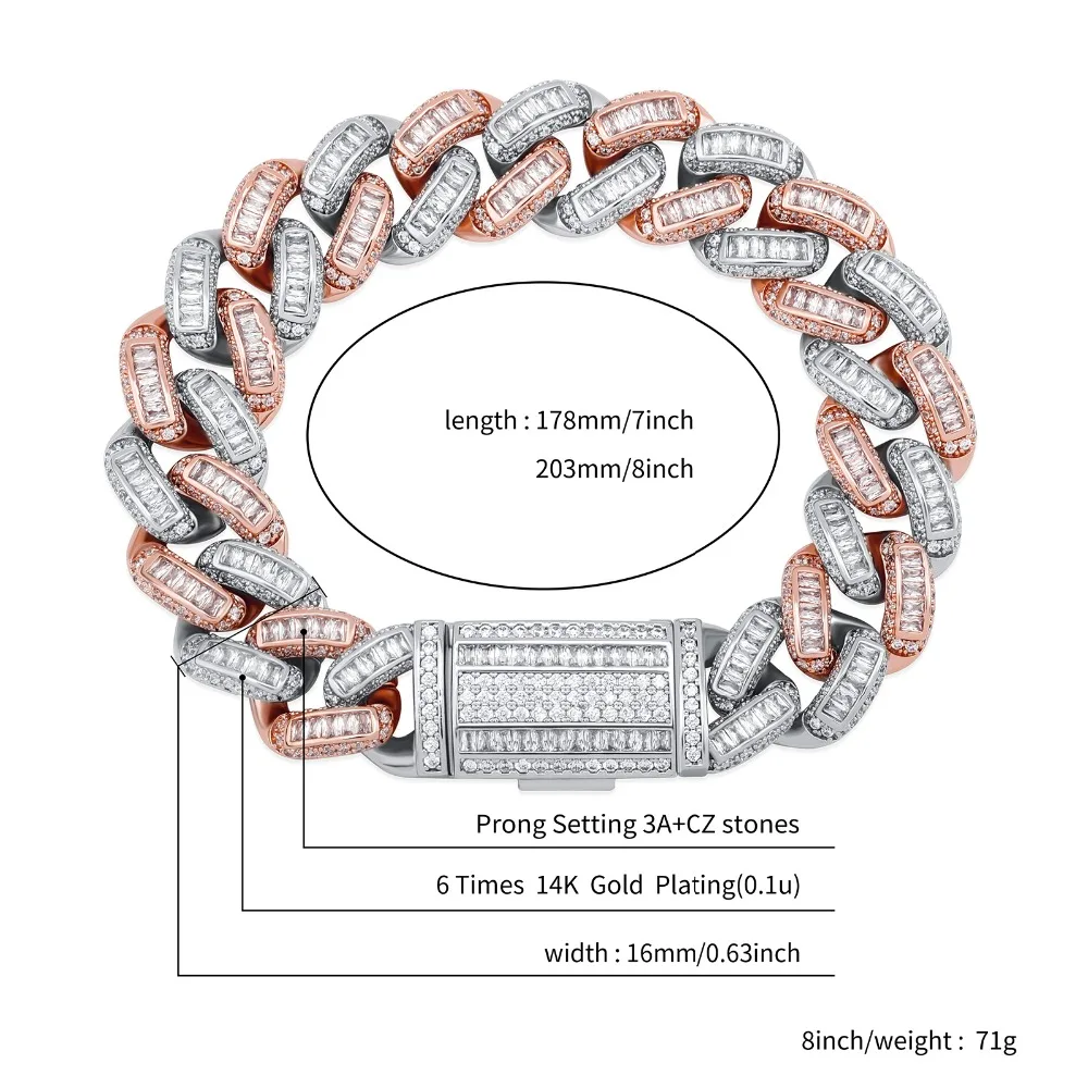 Make a bold statement with our 16mm Baguette Cuban Link Bracelet, adorned with exquisite AAA zircon stones. The baguette-cut zircons are meticulously set to enhance the bracelet's luxurious shine and sophisticated design. This bracelet offers the perfect blend of elegance and durability, ideal for both special occasions and everyday wear. Its timeless style and superior craftsmanship make it a standout addition to any jewelry collection.