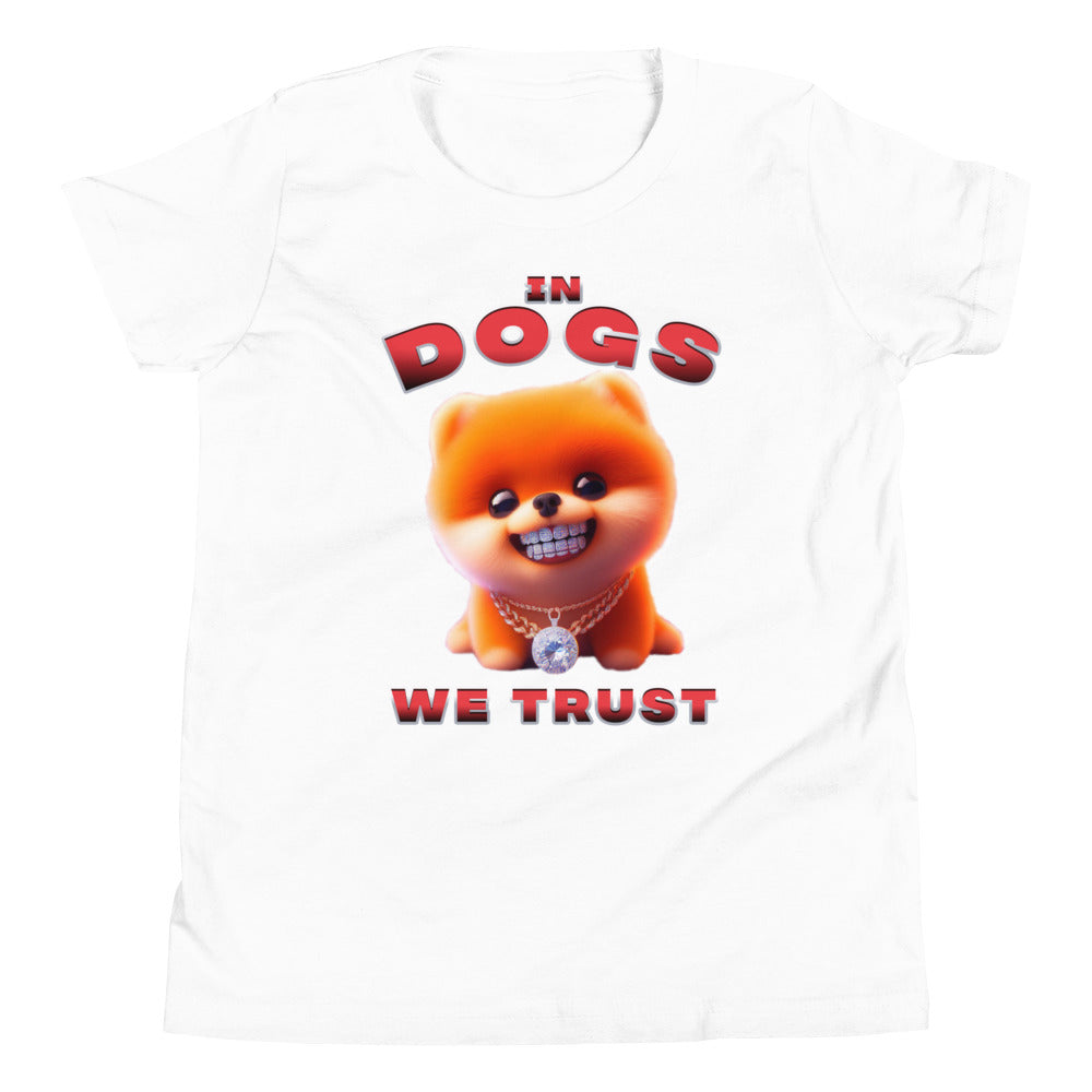 "In Dogs We Trust" takes center stage on each shirt, reminding us all that kids' trust is reserved for their furry friends. This statement tee is not just a garment but a celebration of the special bond between kids and their beloved pets.